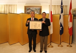 On Tuesday, October 18, the Japanese Foreign Minister’s Commendation conferment ceremony for the 2021 fiscal year was held at the Consul General's Residence, honoring the Japanese drum group Arashi Daiko. Since its founding in 1983, Arashi Daiko has presented countless traditional taiko drum performances, mainly in eastern Canada, contributing to the spread and promotion of traditional Japanese culture. In addition, the group also has contributed to the flourishing of the local Japanese communities by engaging in activities held at the Japanese-Canadian Cultural Centre of Montreal. Through its outstanding representation of Japanese culture, Arashi Daiko has fostered mutual ties of understanding and friendship between Japan and Canada. The Consulate General of Japan in Montreal applauds the remarkable achievements of Arashi Daiko and offers the group members, active and former, its warmest congratulations.